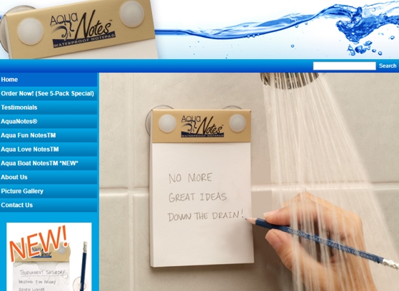 LAS MEJORES IDEAS SE NOS OCURREN EN LA DUCHA Hasta ahora si tenías una idea en la ducha tenías todas estas opciones: una, tratar de recordar la idea después de cerrar el grifo y salir corriendo sin toalla ni nada, arriesgando tu vida, hasta el cuaderno más cercano, empapando el papel en el peor de los casos; dos, gritar a tu pareja la idea para que ella o él la apuntara, con el consiguiente riesgo de avergonzarte porque, reconozcámoslo, no todas las idea de la ducha son grandes idea; y tres, escribías el mensaje en el vaho del cristal. MyAquaNotes propone una cuarta opción: cuadernos de papel resistentes al agua.