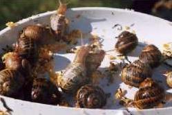 Helix aspersa: Es el caracol común de jardín. Su caparazón es generalmente de un color gris amarillento y presenta un diámetro de entre 30 y 40 mm. su peso oscila entre 5 y 15 gr. Esta especie es la más utilizada en los criaderos, ya que es muy rústica, resistente y fecunda, además de que fácilmente se adapta al cautiverio y a los diferentes climas. Esta es la especie comestible más consumida.