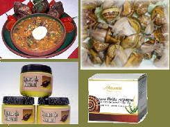 Alimentación: La carne de este molusco ha incursionado en la gastronomía, formando parte de platillos exóticos y es de las preferidas por los paladares exigentes. La carne del caracol además de ser exquisita es muy pobre en grasas del 0,5 a 0,8 %, en comparación con la carne de ternera y la de pollo cuyo contenido en grasa es de 11,5 % y el 12% respectivamente. Es relativamente pobre en calorías de 60 a 80 por cada 100 g, es rica en proteínas de un alto valor biológico de 12 a 16 %, en sustancias minerales 1,5 % aprox. y en nitrógeno 2,5 %. Cabe señalar que en las proteínas que contiene la carne de caracol están presentes casi la totalidad de los aminoácidos necesarios para el hombre 9 de 10 y en las proporciones requeridas para la síntesis proteíca. Adicionalmente con los huevos de caracol se prepara una especie de caviar blanco. Para fines medicinales: Las proteínas de los caracoles actúan en la reconstrucción integral de los tejidos gástricos, ayudando a la cura de la úlcera. Ayuda a combatir el raquitismo y es óptimo para el estado de lactancia. Su alto tenor en ácidos grasos polinsaturados ayuda a combatir el colesterol y es recomendado para las dietas especiales en casos de hiper-trigliceridemia e hiper- colesterolemia. Al ser pobre en lípidos puede ser consumido por personas afectadas por problemas hepáticos, arteriosclerosis y obesidad. Sector estético: La baba de caracol es una sustancia que segrega este molusco para poder construir y regenerar su cáscara y así poder disponer siempre de su característica defensa. Esta sustancia que nos puede resultar insignificante y hasta repugnante, es utilizada en cosmetología sobre todo en paises como Francia y Alemania, donde se aplica para el cuidado, regeneración, cicatrización y mejora de la piel.